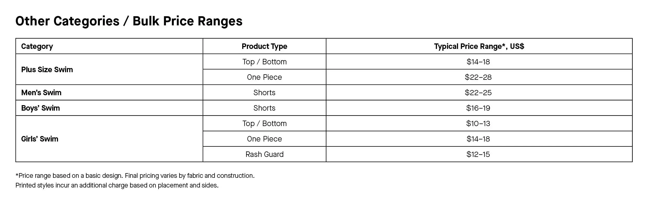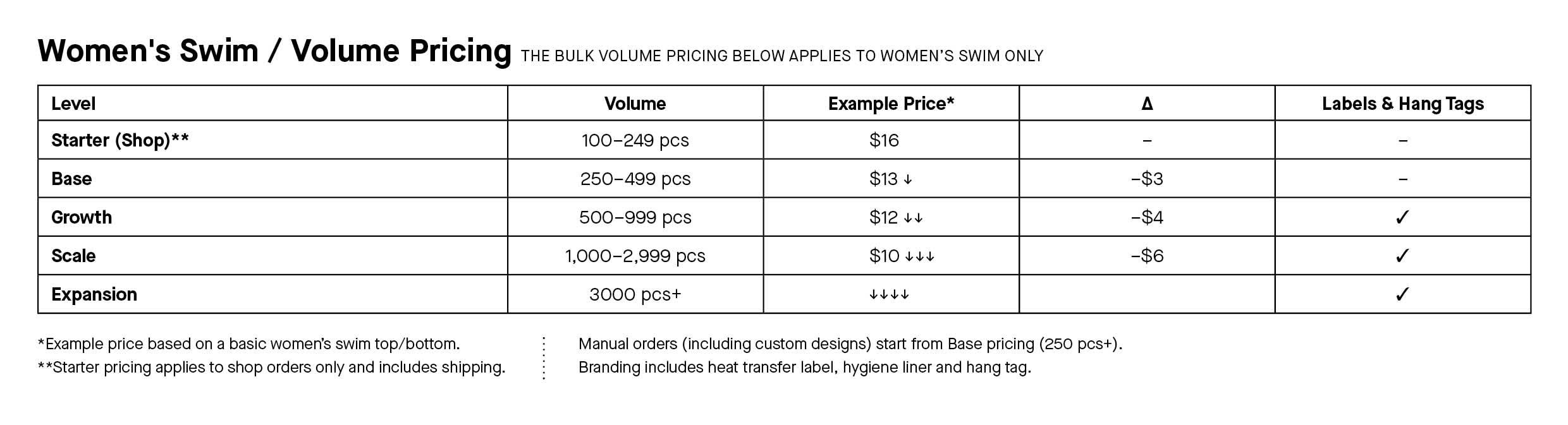 Custom Swim Price Lists
