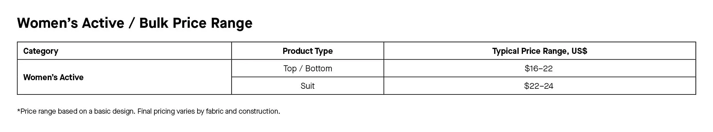 Price lists for our Ready Designs are available in our shop and catalogs: Swim | Active.
